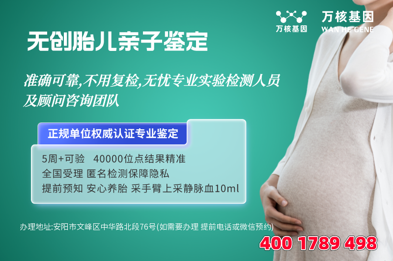 产前无创亲子鉴定,通过采集孕妇静脉血样本来完成dna鉴定、鉴定结果准确度99.9999%。孕妇在怀孕期间不知道胎儿究竟是谁的,或者父亲怀疑胎儿是否亲生,这些情况都可以通过安阳产前无创亲子鉴定来确定胎儿与父亲的亲子关系。